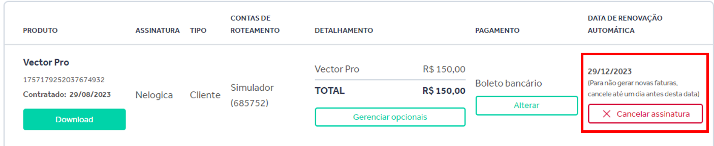 Todas as assinaturas realizadas em Vector são recorrentes, ou seja, até que haja o cancelamento, a assinatura será renovada automaticamente.